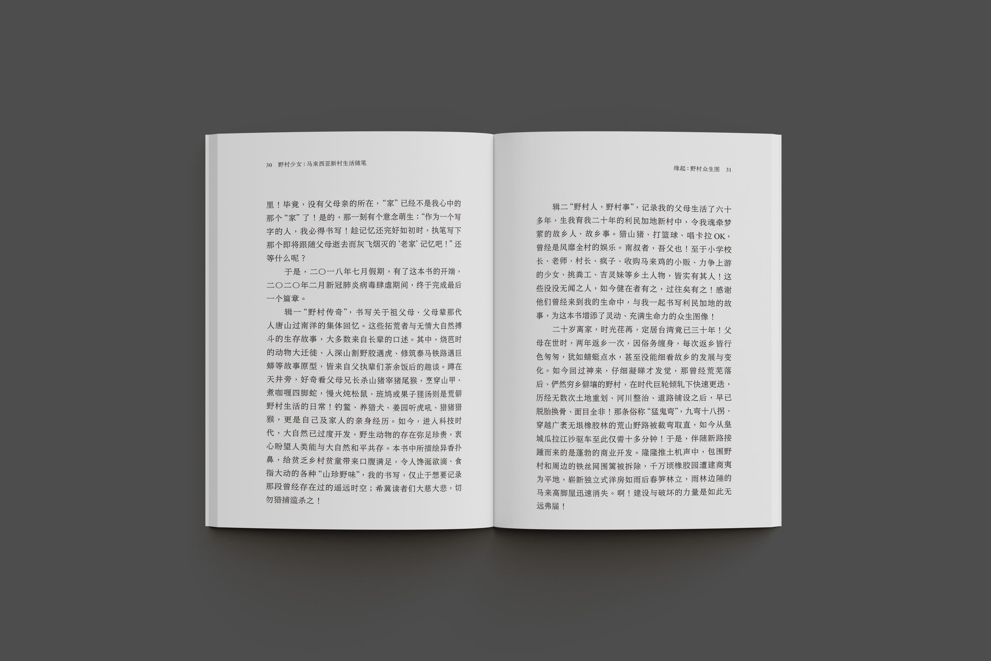 辑一“野村传奇”书写父辈下南洋的事迹,以及那代拓荒者与大自然搏斗的故事,也写新村居民打猎、吃野味的“日常”。
